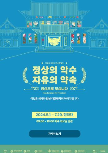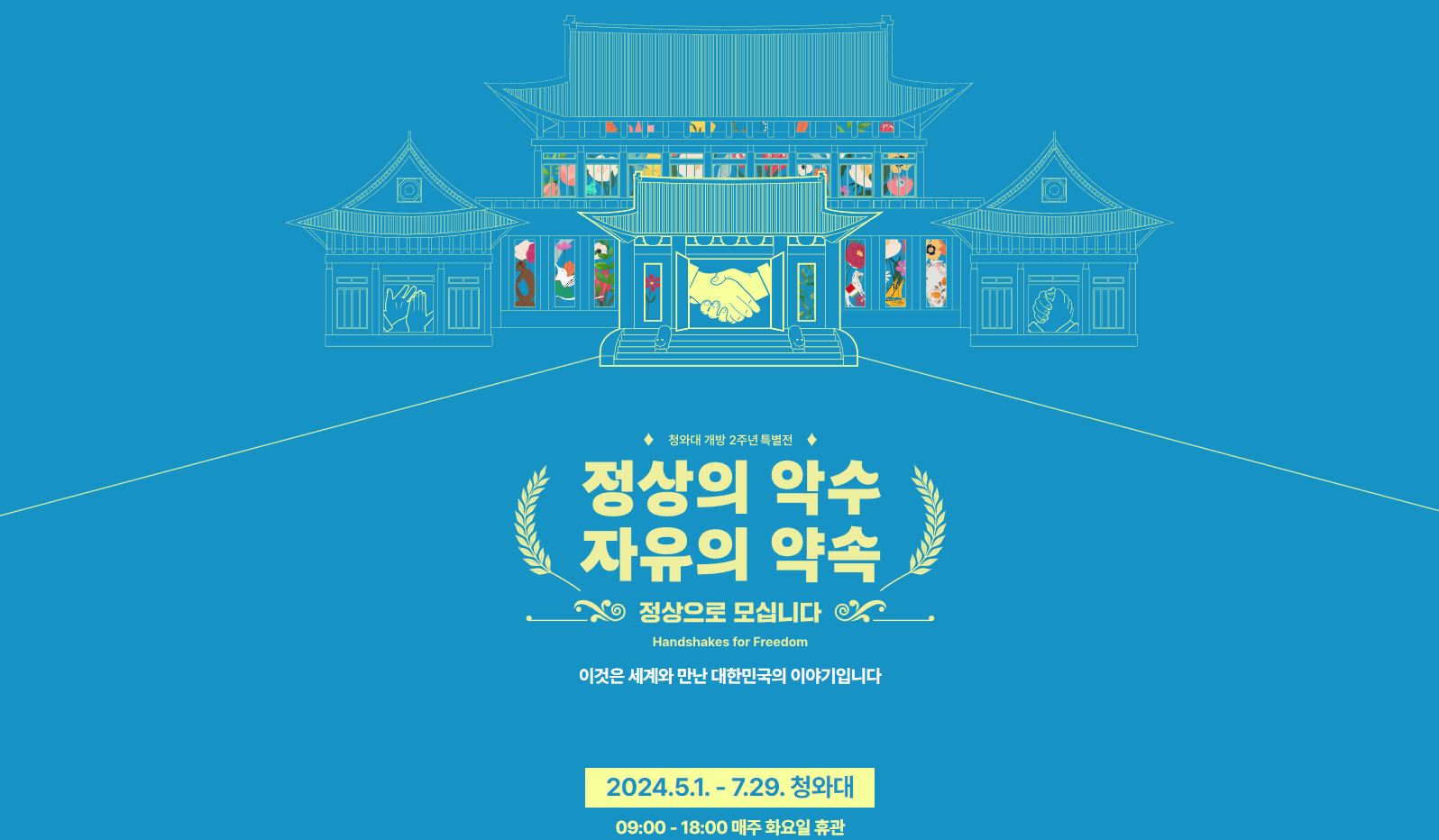 청와대 개방 2주년을 맞이하여 본관1층 충무실, 인왕실, 세종실에서 '정상의 악수, 자유의 약속' 전시가 진행되고 있습니다.