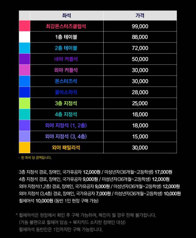 티켓팅 하기 전 원하는 좌석위치를 미리 확인해두시면 더욱 빠르게 티켓팅에 성공하실 수 있습니다.