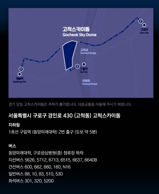 직관경기가 진행되는 당일에는 고척스카이돔 주차가 불가능합니다.