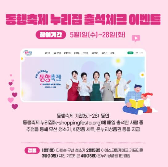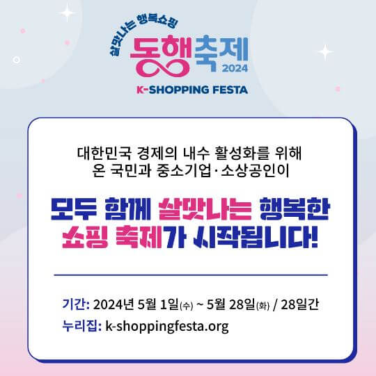 2024 KOREA SHOPPING FESTA 동행축제는 2024.5.1. ~ 5.28. 28일동안 진행됩니다.