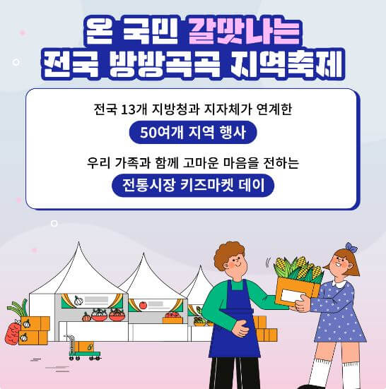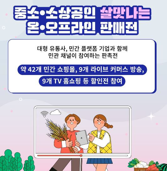 5월 중 문화,예술, 관광, 음식 등 다양한 지역 축제 및 행사와 연계하여 중소기업, 소상공인 제품 판촉전이 열립니다.