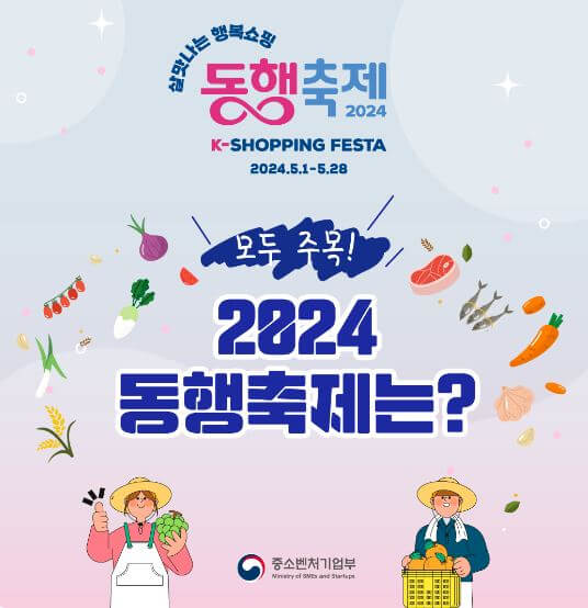 2024 동행축제는 올해 5년차를 맞이하는 국내 최대규모의 중소기업, 소상공인 제품 소비 촉진 행사입니다.