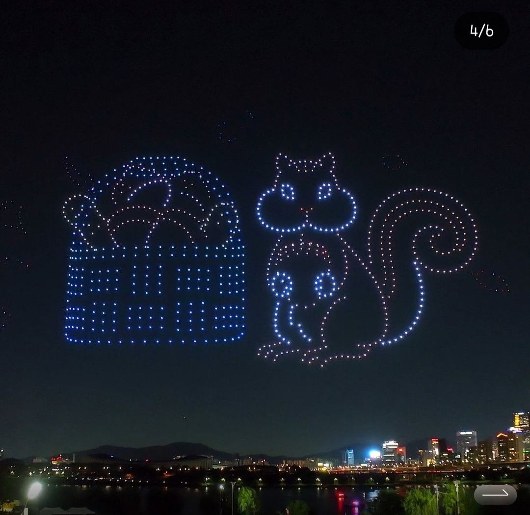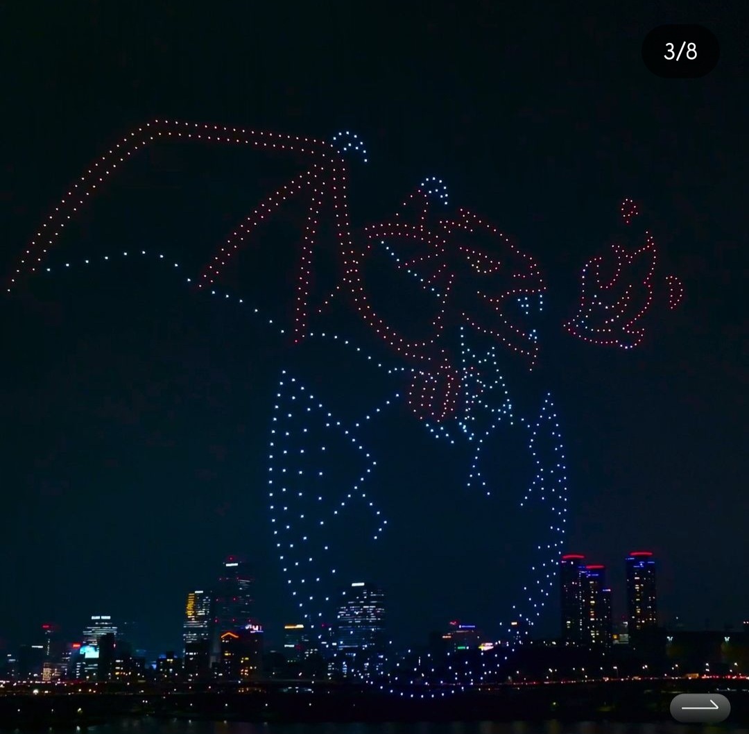 2024년 잠실 한강공원 드론쇼가 진행되고 있습니다.