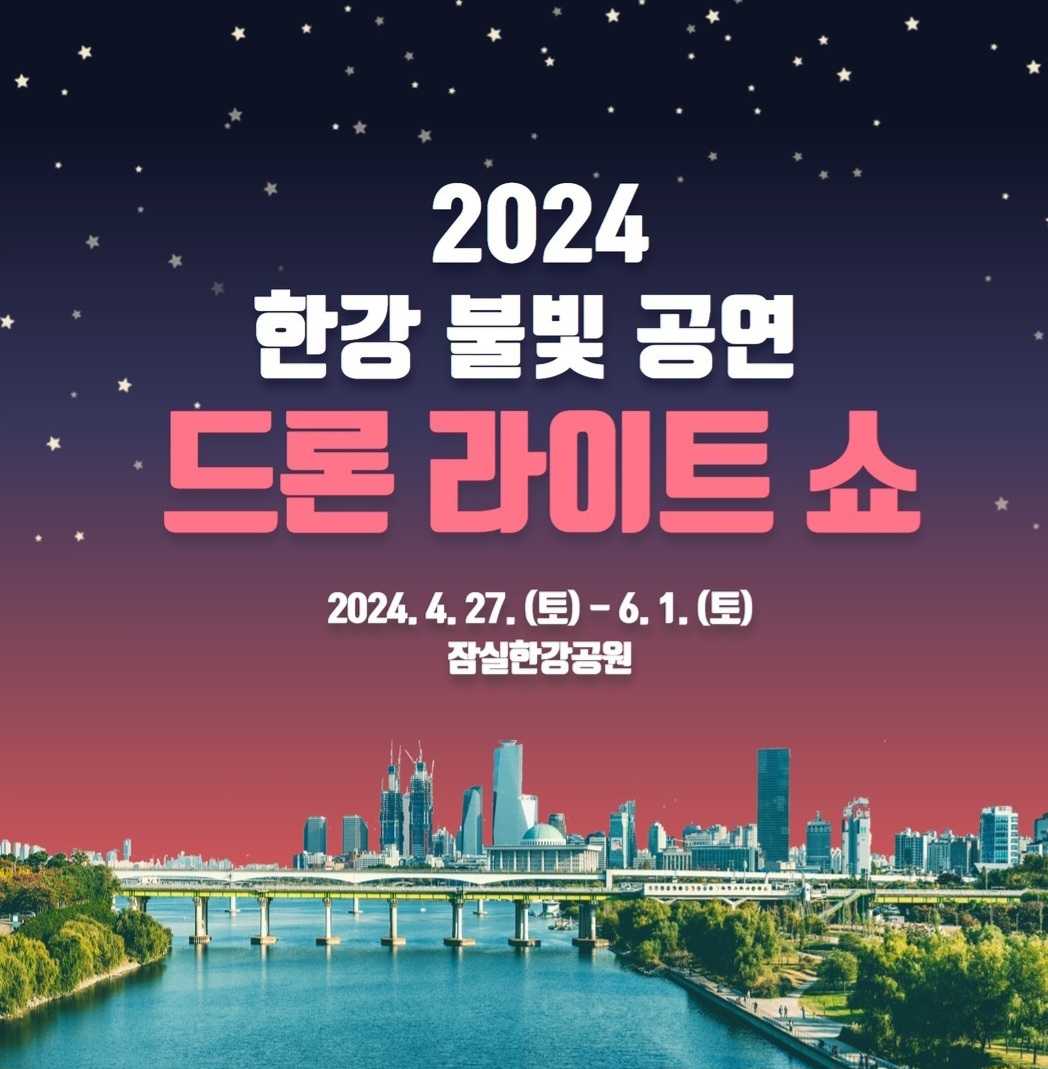 2024 한강 불빛 공연 드론라이트쇼는 '4월 27일 (토) ~ 6월 1일(토)' 잠실 한강공원과 뚝섬한강공원에서 펼쳐지는데요.